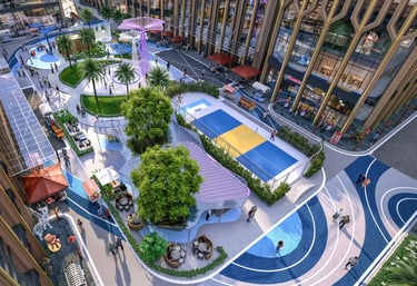 Khu gym & yoga trong nhà/outdoor, sân thể thao (pickleball, basketball), đường chạy bộ nội khu
